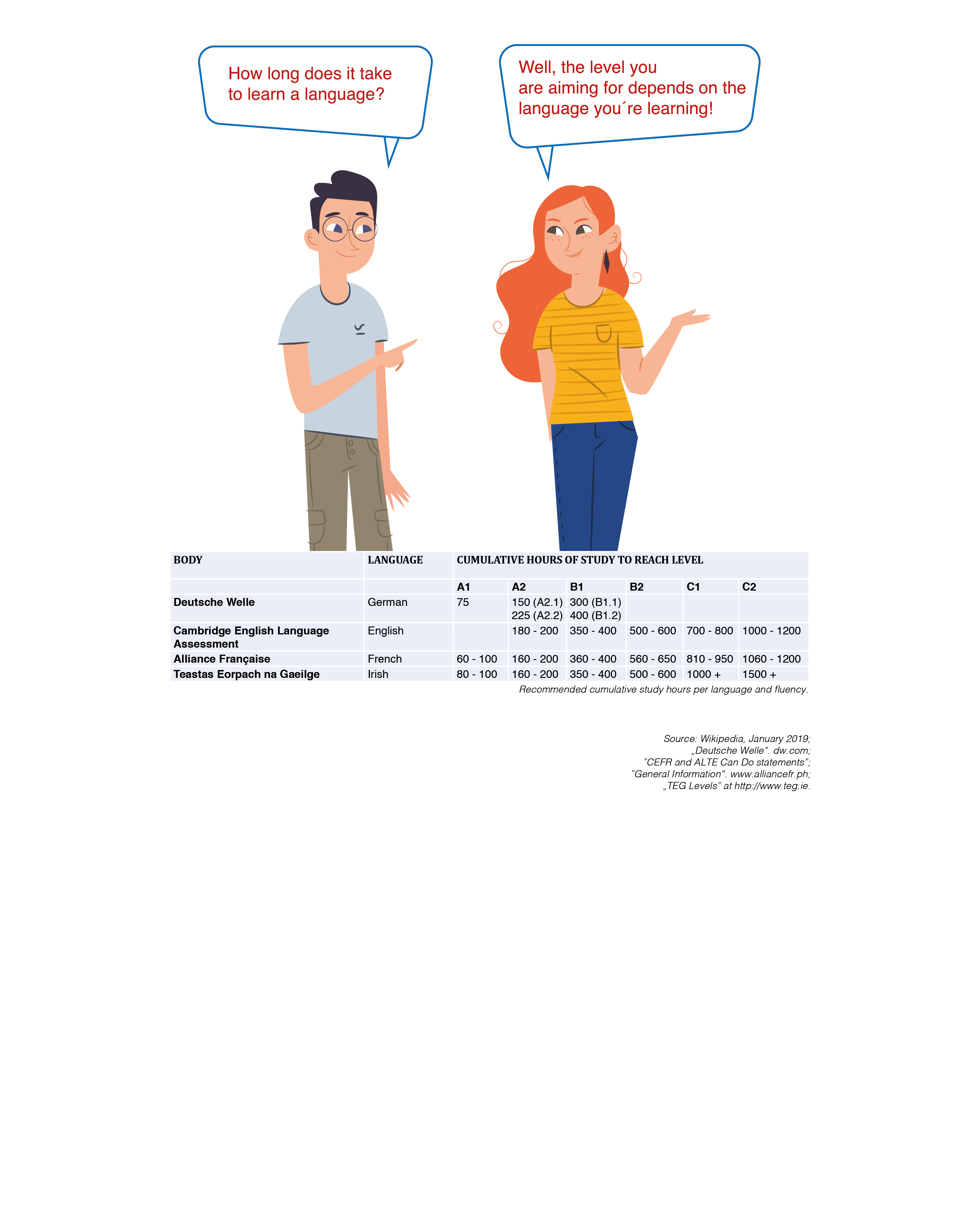 Educational bodies for various languages have offered estimates for the amount of study needed to reach levels in the relevant language.